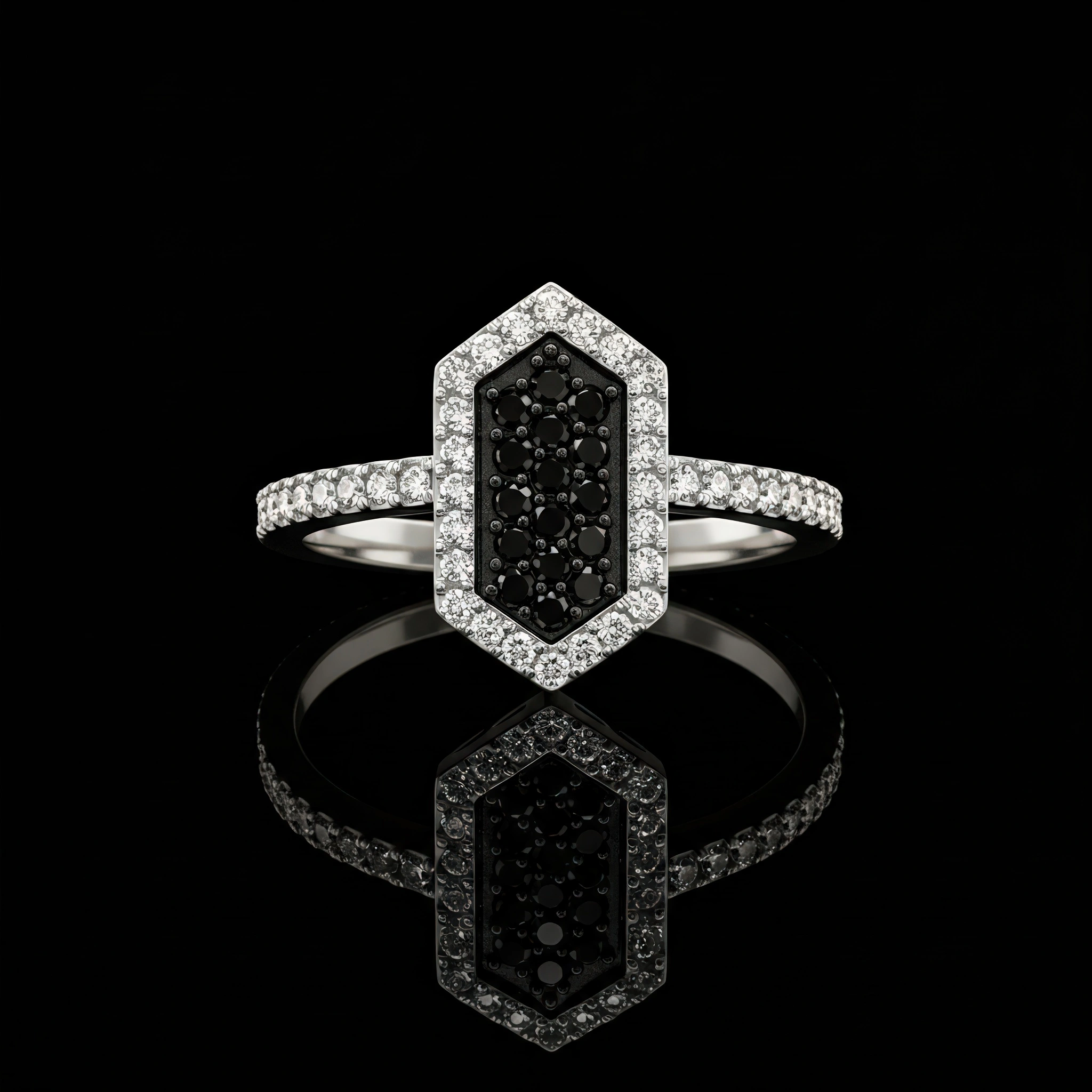 Black And White Diamond Shield Ring Nº2