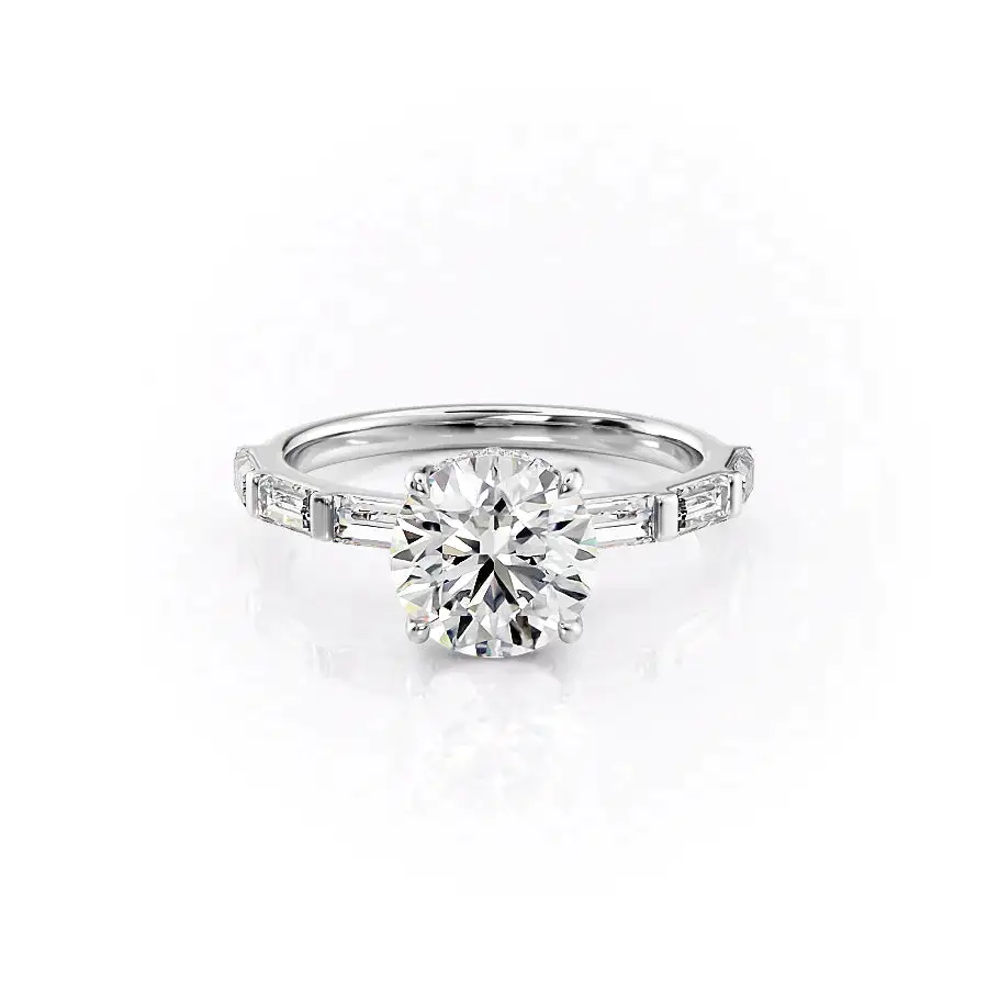 Round Solitaire Hidden Halo Baguette Pavé