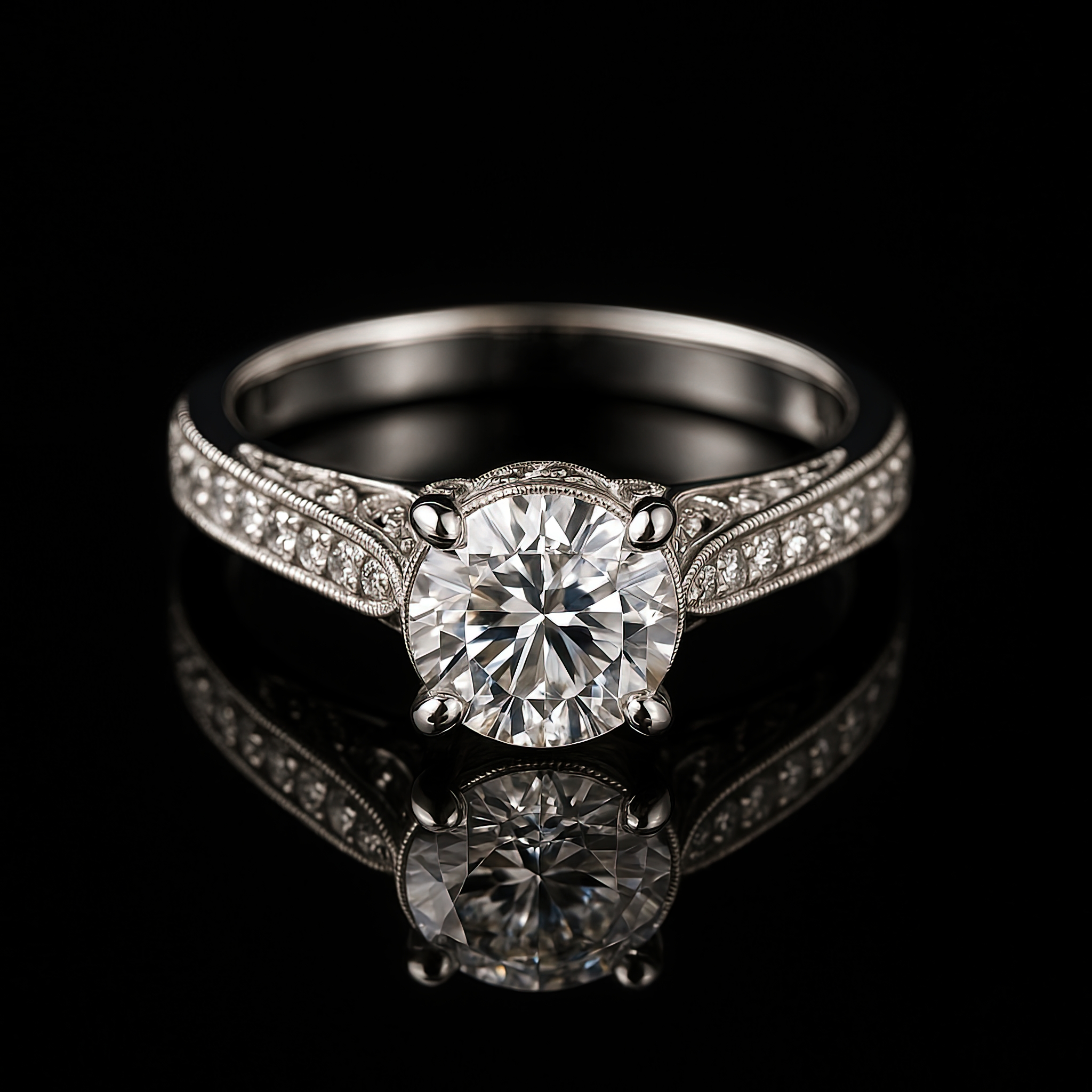 Round Solitaire Milgrain Pave Band Nº1